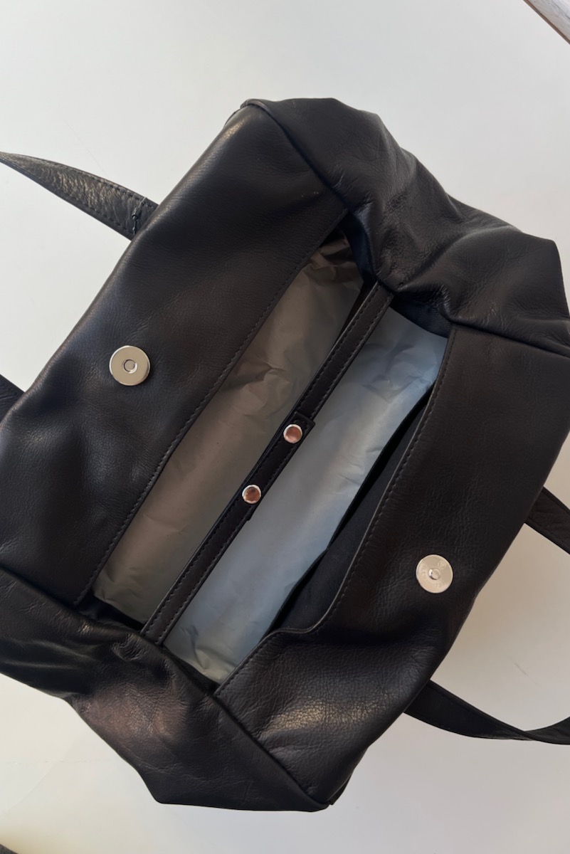 バッグの口はマグネットボタンで開閉します。