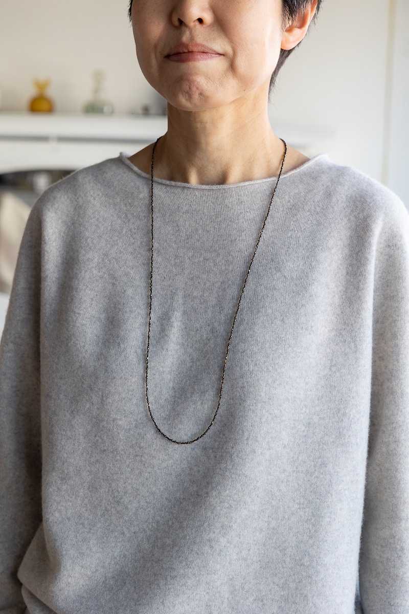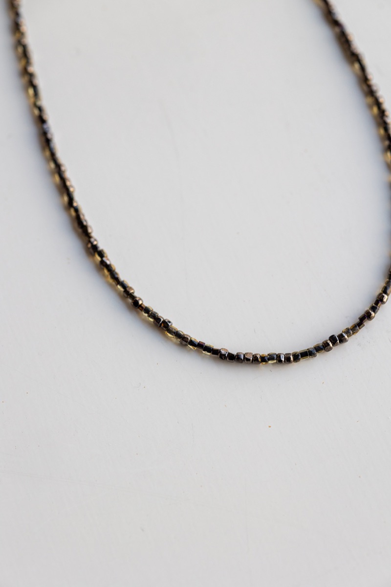 種のように小さいガラスビーズのロングネックレス。