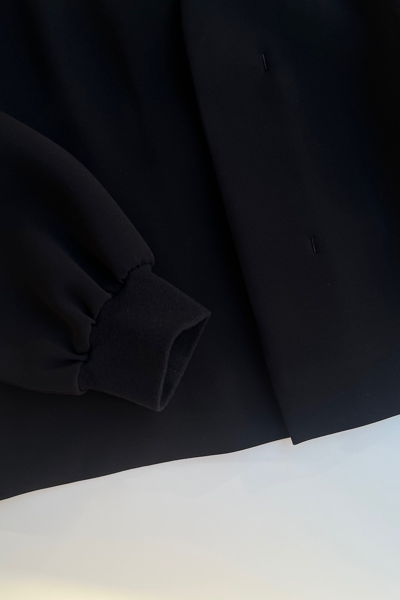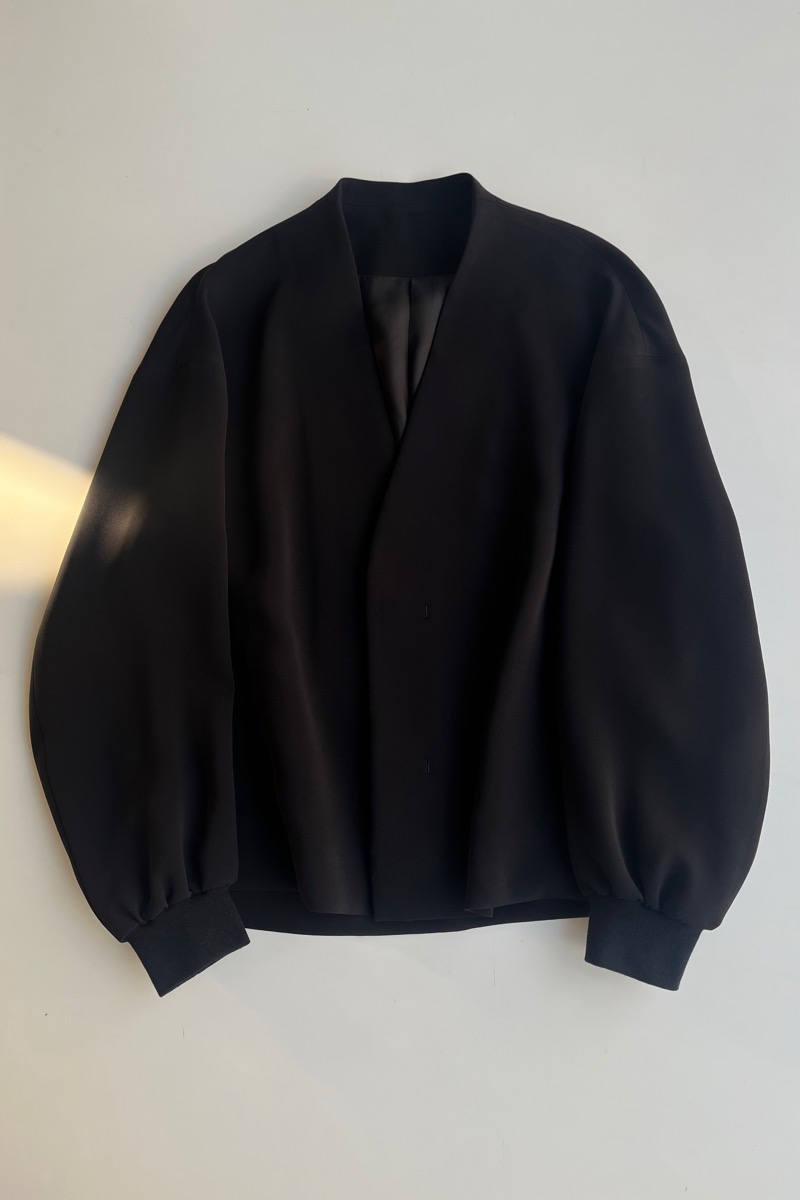 ゴーシュ「ストレッチブラック」ノーカラーブルゾン ¥52,800 (in tax)
