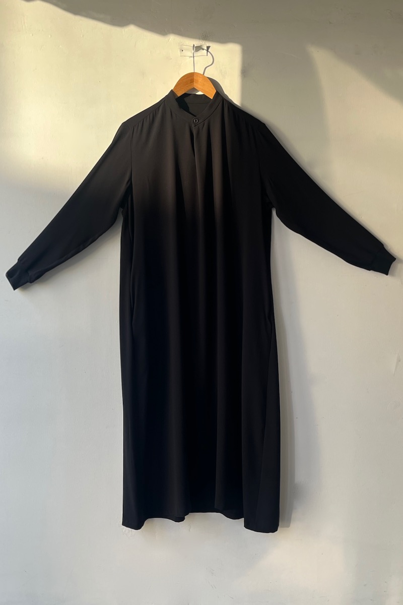 ゴーシュ「バックサテンブラック」ロングワンピース ¥49,500 (in tax)