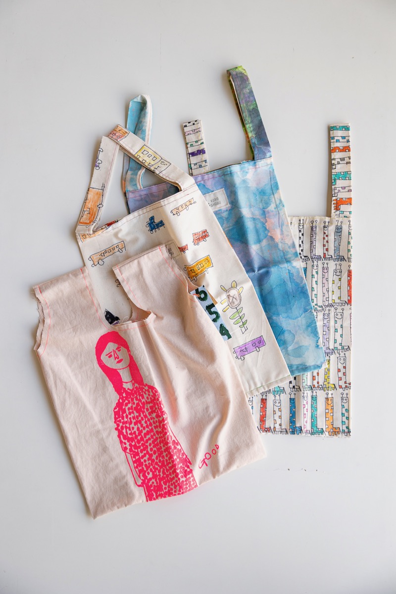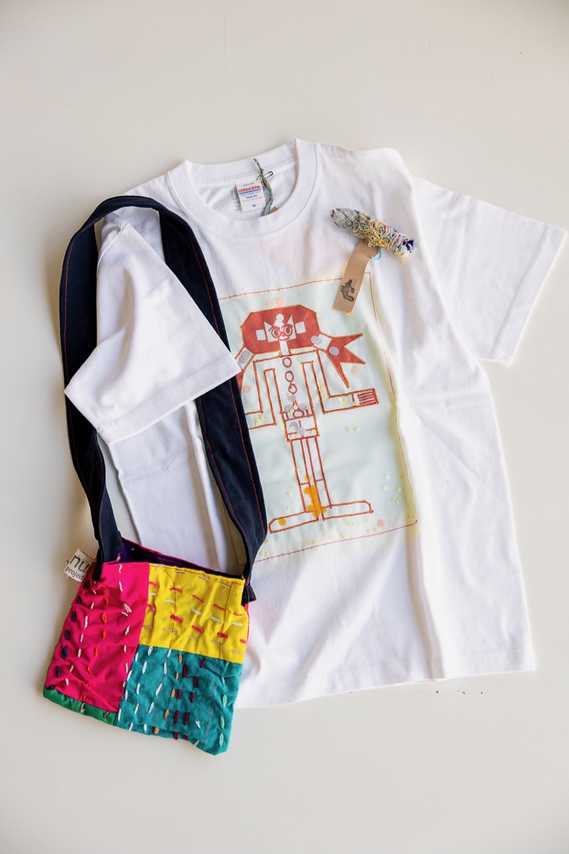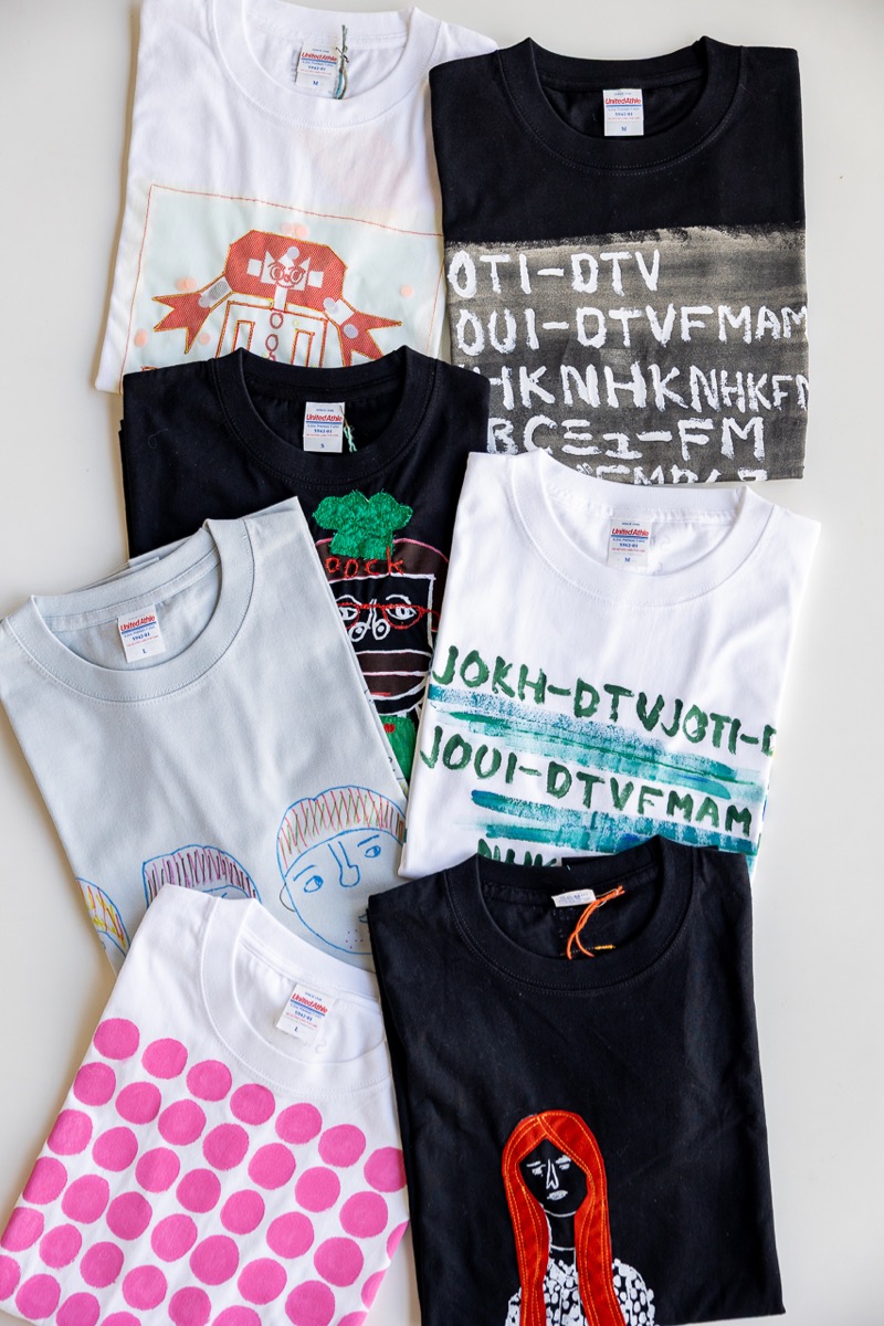 手書きのTシャツやステッチTシャツ、エコバッグ、nuiプロジェクトの刺繍シャツや