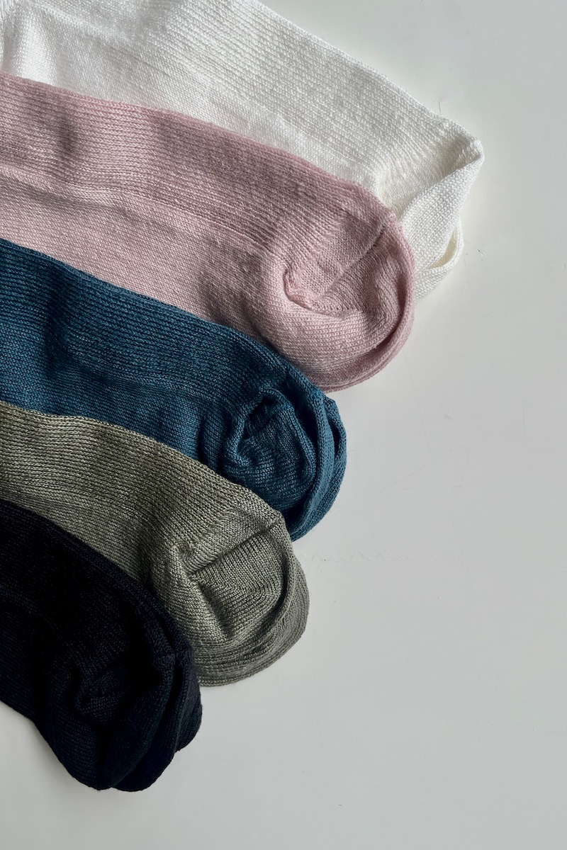 清涼感のあるリネンの糸で編み立てられた、素朴な風合い。