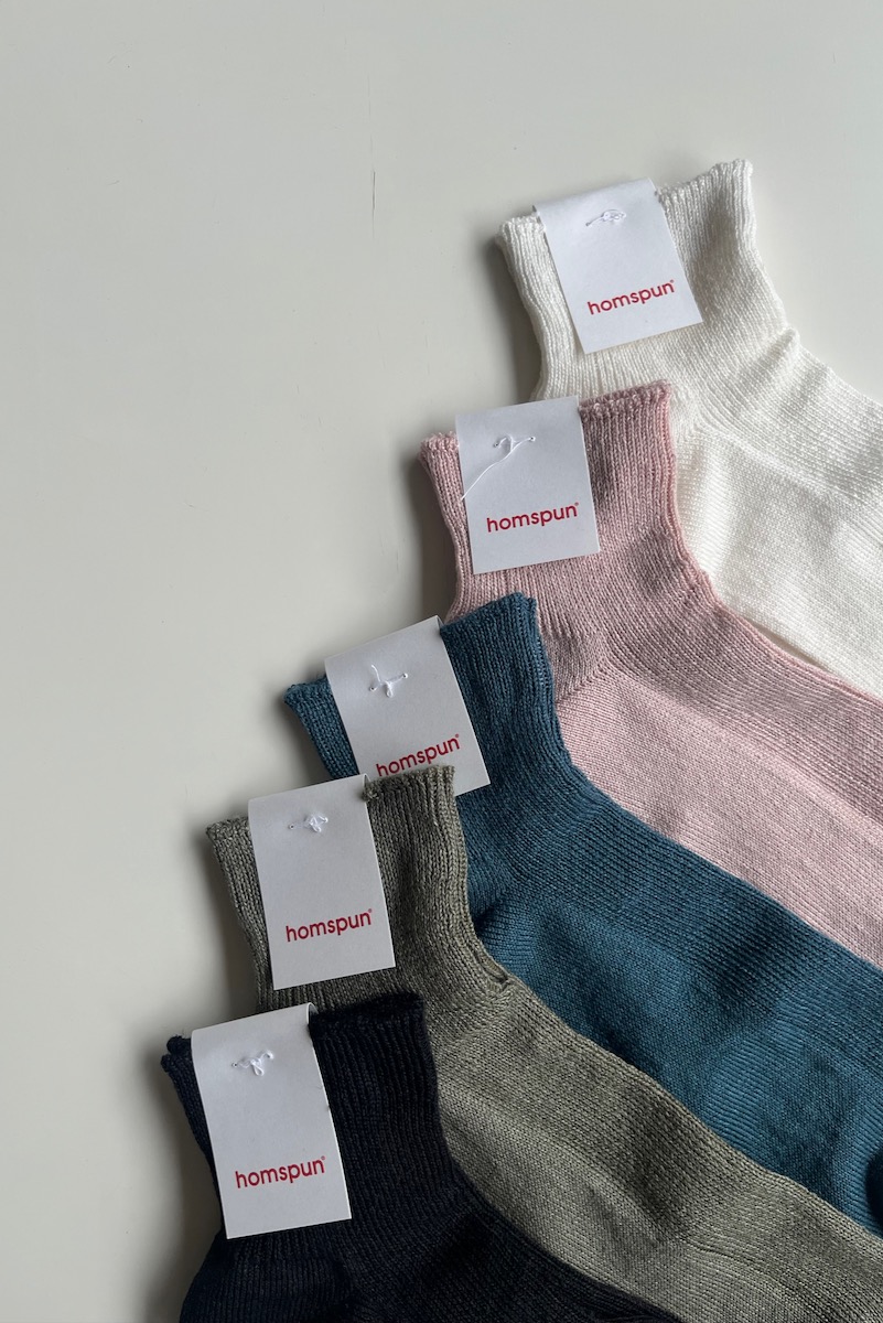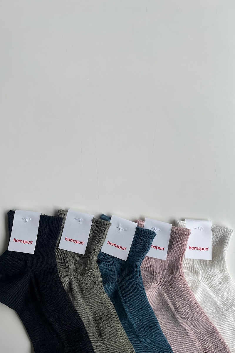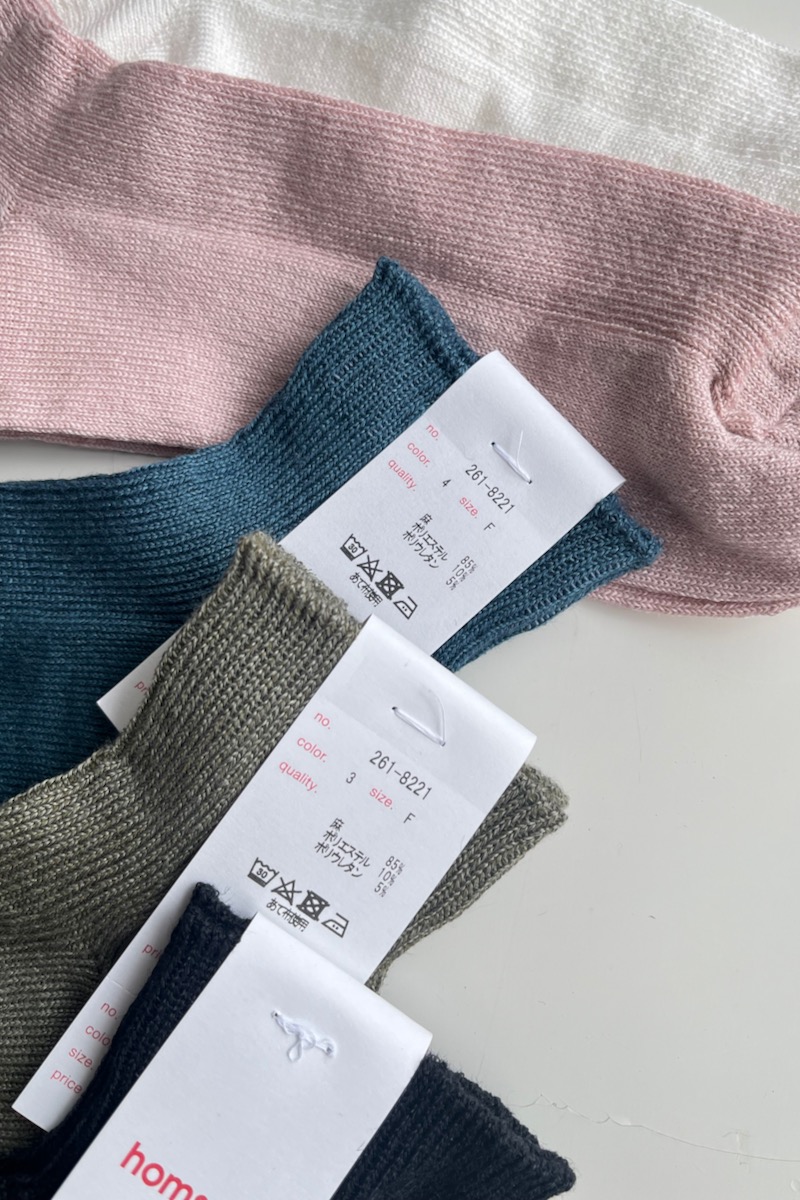 くるぶしが隠れるくらいの短めソックスは、サンダルでもスニーカーでも合います。